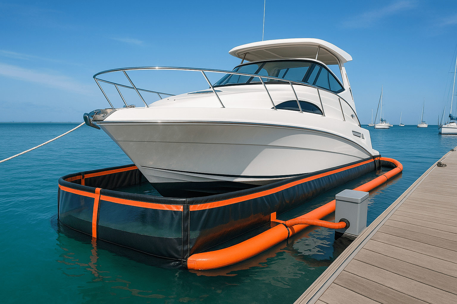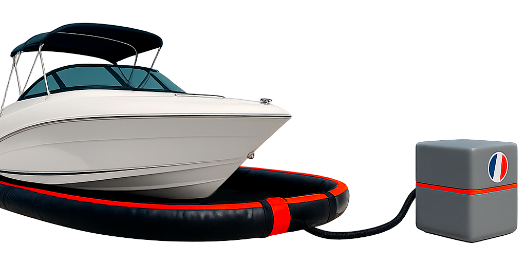 Votre bateau s'amarre facilement dans notre protection gonflable fixe en forme de V.